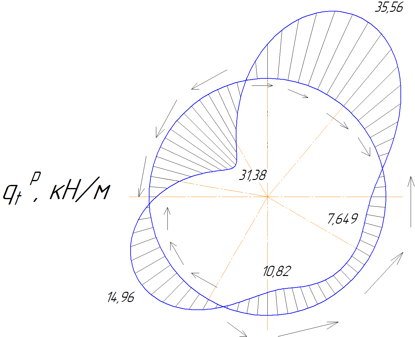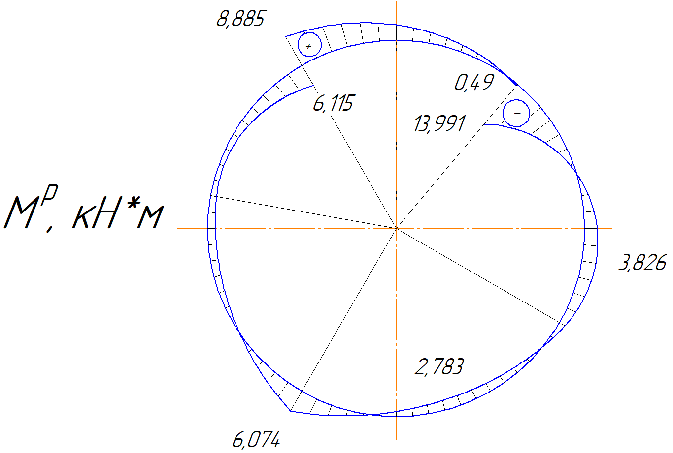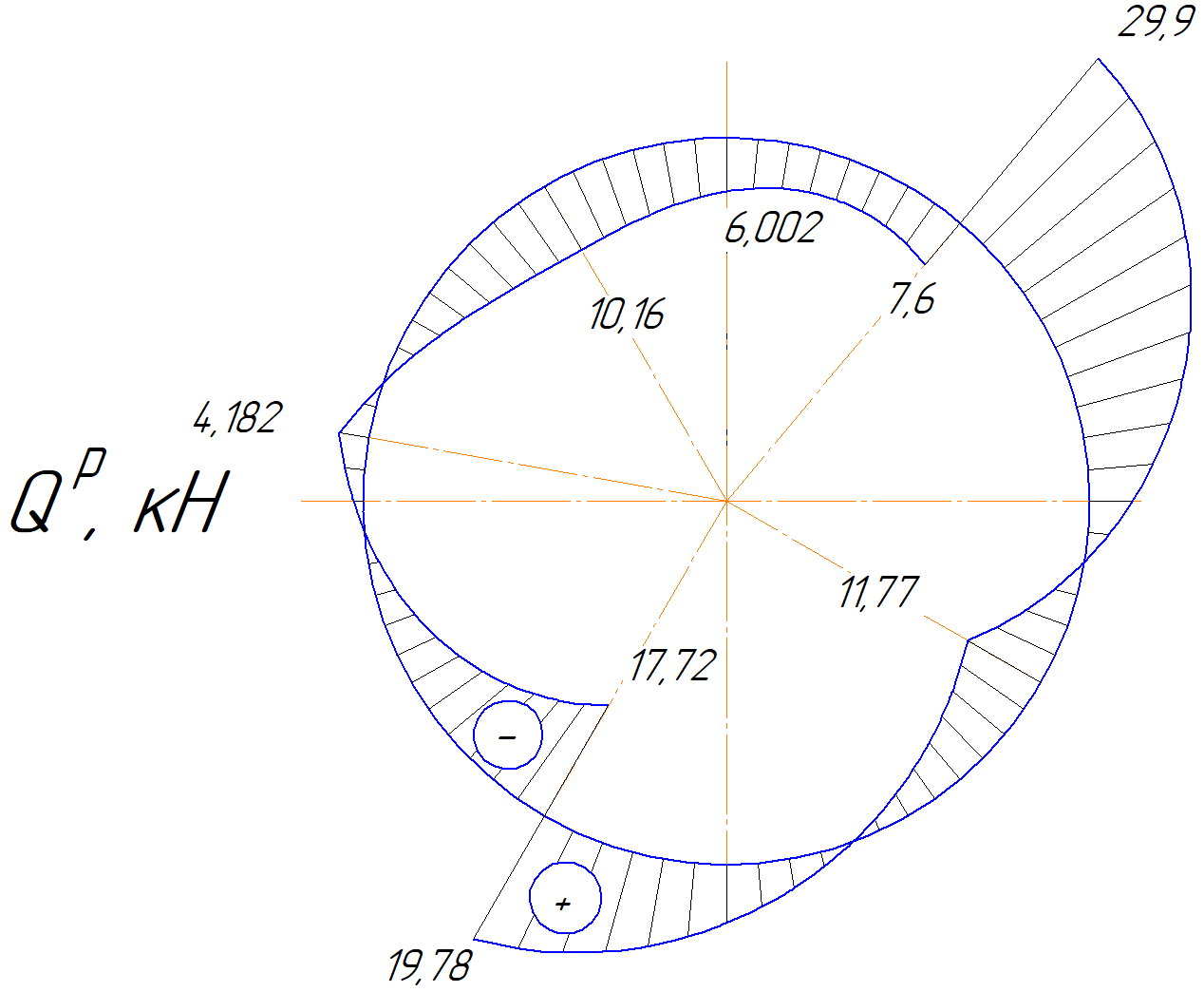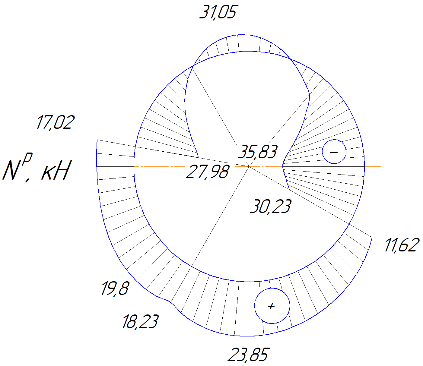 Определим максимальные значения изгибающего момента, нормальной и перерезывающей сил по абсолютной величине: