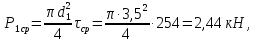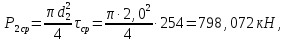 Используем двухсрезную заклепку, для которой величина срезающей силы равна