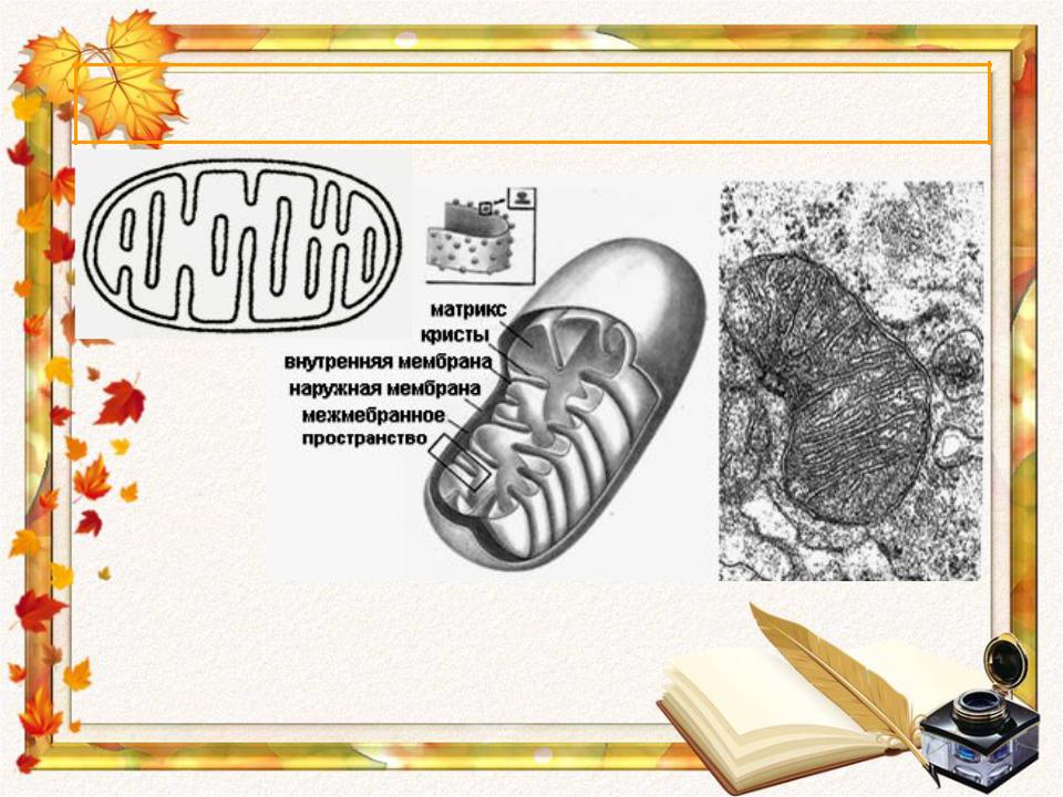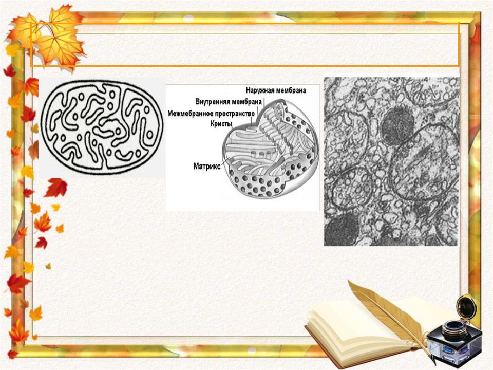 •Схема и электронная микрофотография митохондрии с пластинчатыми кристами