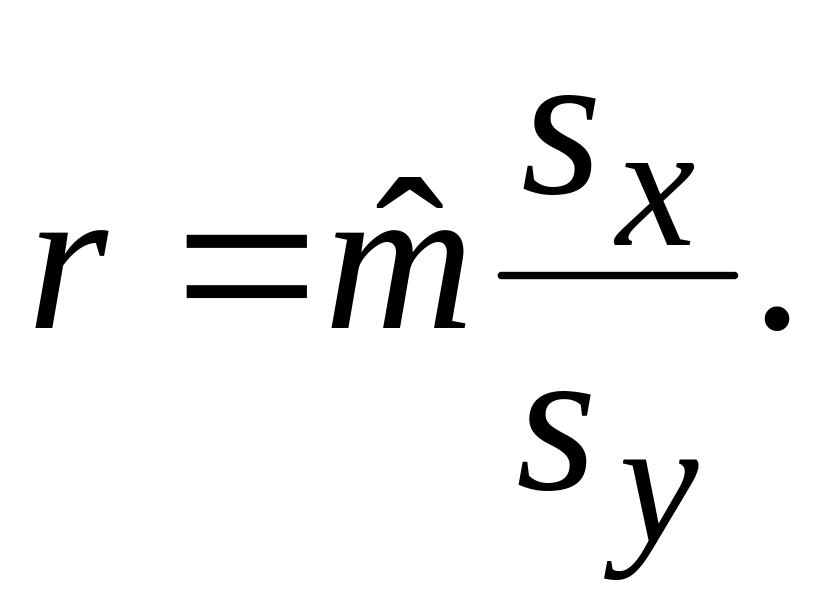 Подставляя выражение , полученное из формулы (4) для оценки коэффициента парной линейной регрессии, в соотношение (П-1) получим выражение для выборочного коэффициента корреляции, которое использовалось в §1.3 практической работы №1: