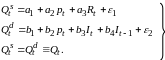 Экзогенные переменные модели: Rt – процентная ставка в момент времени t; It – доход в момент времени t; It-1 – доход в момент времени t-1. Эндогенные переменные: Qst – предложение в момент времени t; Qdt – спрос в момент времени t; pt – цена товара в момент времени t.