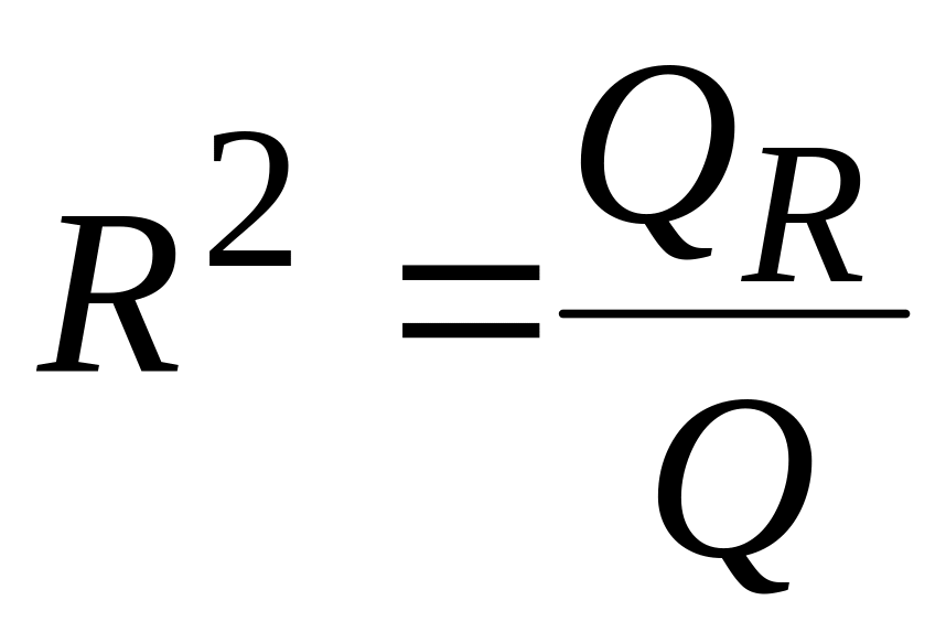 Критерии качества уравнения регрессии обычно определяются через отношения рассмотренных выше сумм квадратов (тогда величина критерия не зависит от единиц измерения отклика). Например, используется коэффициент детерминации R2: