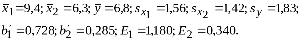 Определить стандартизированные коэффициенты регрессии и коэффициенты эластичности. Пояснить их смысл.