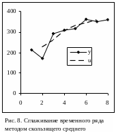 Уровни ряда показываем на координатной плоскости (t, y). Для этого выделяем преобразованную таблицу, вызываем мастер диаграмм и выбираем точечную диаграмму без соединительных линий (см. рис. 6).