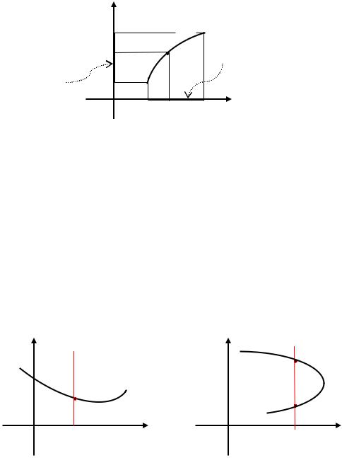 Следует заметить, что не любая кривая на плоскости может быть графиком какойнибудь функции . Дело в том, что на графике не может быть различных точек с одной и той же абсциссой, так как каждому значению соответствует единственное значение . Визуально это означает, что любая вертикальная прямая должна пересекать кривую не более чем в одной точке.