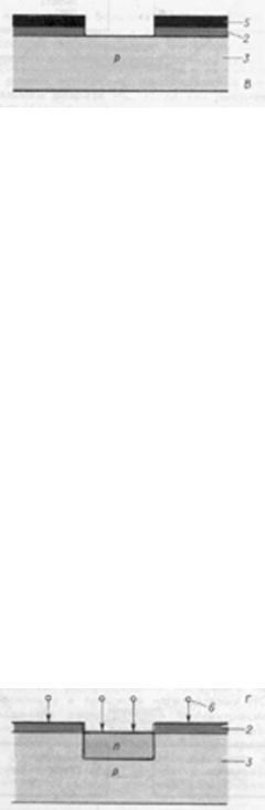 2. Если некоторые области кремния, лежащие под слоем диоксида, необходимо подвергнуть обработке, то слой оксида необходимо предварительно удалить с соответствующих участков. Выделение таких участков на кремниевой подложке выполняется с помощью процесса, получившего название литографии. Целью этого процесса является перенос рисунков с фотошаблонов на поверхность пластины с тем, чтобы в дальнейшем создать на ней необходимые слои.