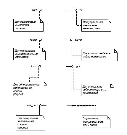 На рис. 7.3 показана начальная диаграмма, которую нарисовал автор для первой встречи с экспертом. На ней присутствуют только интерфейсы с диаграмм компонент UML и комментарии к ним. На рис. 7.4 представлена заключительная диаграмма, получившаяся в итоге многочисленных итераций. На ней присутвуют мнгочисленные компоненты системы, сгруппированные по уровням.
