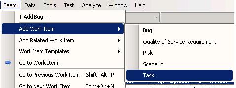 Создание элементов работы. Для создания нового элемента работы можно воспользоваться пунктом меню Team, добавляемым в Visual Studio вместе с Team Explorer, как показано на рис. 12.3.