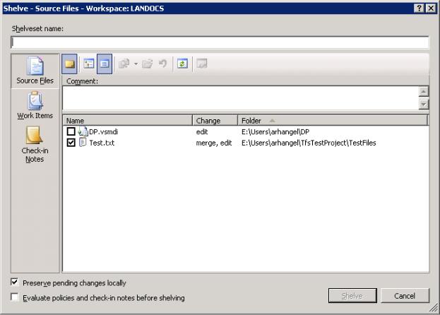 Для сохранения изменений служит команда Shelve, открывающая диалог, представленный на рис. 13.16, аналогичный диалогу внесения изменений за исключением поля для введения имени сохраненного пакета в верхней части и двух следующих дополнительных опций в нижней части.
