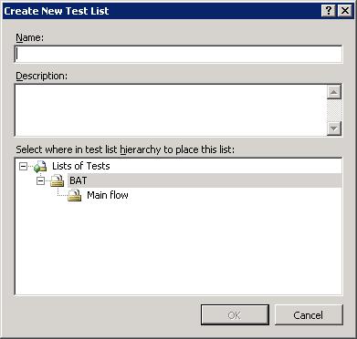 Для создания тестового пакета можно воспользоваться меню «Create New Test List», как показано на рис. 14.8, и после этого откроется окно для задания имени нового пакета и определения его места в иерархии тестовых пакетов (см. рис. 14.9). В том случае, если для решения уже создан файл метаданных, пакет тестов будет добавлен к нему, если же файла метаданных еще создано не было, он будет создан автоматически.