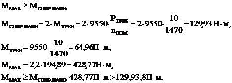 электродвигателя выбирается из условия PНОМ