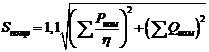 Сначала определяется полная мощность,