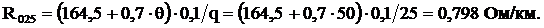 сопротивления для выбранного кабеля соответственно равны r0 = 0,33