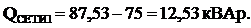 потребляемая реактивная мощность составляет 87,53 кВАр.
