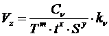 m, х, у - показатели степени, зависящие от вида обработки и материала.