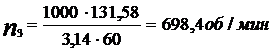 Определяем частоту вращения шпинделя для третей операции - подрезка торца, при Vz=131,58 м·мин-1; D=60 мм.