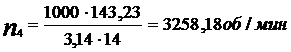 Определяем частоту вращения шпинделя для четвёртой операции - сверление, при Vz=143,23 м·мин-1; D=14 мм.
