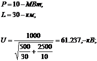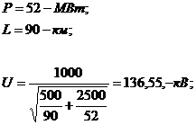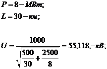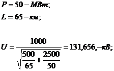 где, Р-активная мощность( которая передается на расстояние), МВт;