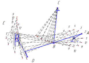На рис. 3.3 показаны 12 положений механизма в масштабе.