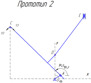 Для второго прототипа подбираем длины звеньев, решая уравнения