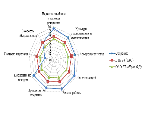Рисунок 9 - Радар конкурентоспособности ОАО АКБ «УРАЛ ФД»
