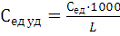 передачи 1 Гкал на 1 метр, руб. / (Гкал·м), определяем