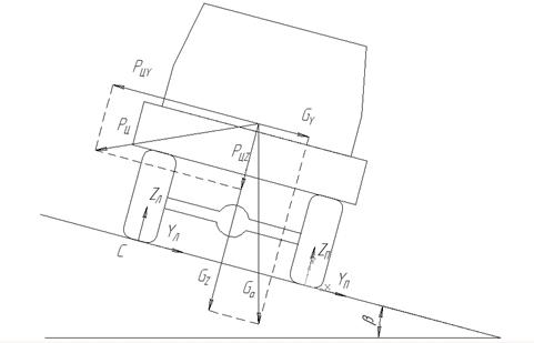 Рисунок 7 - Расчетная схема поперечной устойчивости автомобиля