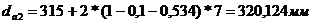 вершин зубьев, мм
