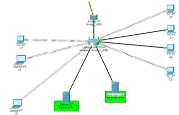 В данном курсовом проекте была создана топология соединения 3-х офисов в разных частях города, выполнены настройки ip адресов, маршрутизации, безопасности, а также настройки серверов. Сконфигурированы 2 Web сервера и E-mail с сопостовлением символьных имен IP адресам. Сконфигурирован проброс портов через Linksys роутер. Настроен ZBF фаервол (Service Leg конфигурация). Хосты офис 2 получают IP адреса от внешнего DHCP сервера, также во втором офисе настроен Radius сервер для аутентификации всех роутеров по технологии SSH из первого офиса.