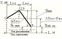 2. Вид недостроенной диаграммы натяжения ленты бремсбергового конвейера,