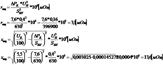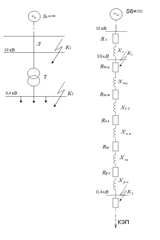 Расчет схемы замещения в сети напряжением до 1кВ состоит из элементов с активными и индуктивными сопротивлениями в цеховых трансформаторах, токовых катушек, трансформаторах тока, шин, жил проводов и кабелей, а также активного сопротивления контактных соединений.