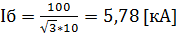 Для внутризаводского расчета токов короткого замыкания принимаем Sб.=100 МВА.