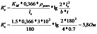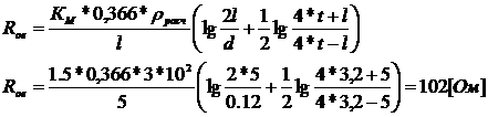 где lг - длинна горизонтального заземлителя[м], b - ширина, t=0,7 [м]