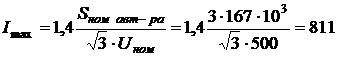 Imax=2 ∙Iном=2 ∙617=1234 А