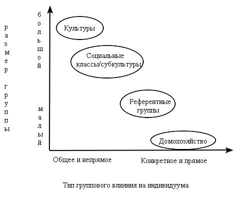 взаимозависимо в силу формальных или неформальных связей между индивидуумами. Потребитель периодически находится в определенном отношении к какой-либо группе и в силу этого испытывает персональное влияние других людей.