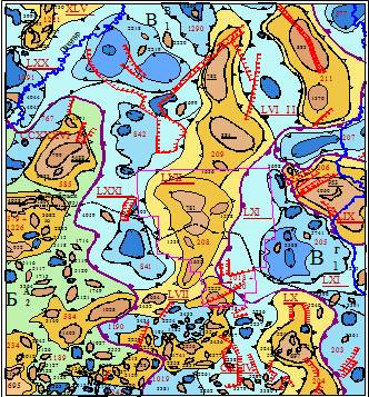 Согласно "Тектонической карте мезозойско-кайнозойского ортоплатформенного чехла Западно-Сибирской геосинеклизы", составленной в 1990г. институтом ЗапСибНИГНИ под редакцией В.С.Бочкарева, масштаба 1:1000000 (рисунок 2.1.4), Вынгапуровское нефтегазоконденсатное месторождение находится на территории южной части субрегиональной структуры - Ямало-Тазовской мегасинеклизы (В), которая, в свою очередь, осложнена надпорядковой структурой - Надым-Тазовской синеклизой (В1).