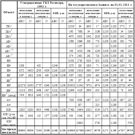 На сегодняшний день на балансе Вынгапуровского месторождения числятся залежи следующих продуктивных пластов: