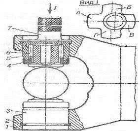 подшипника; 4 - сальник; 5 - шип крестовины; 6 - игла подшипника; 7 - калибр;