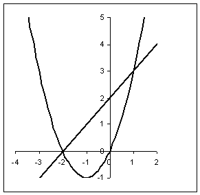 (1; 3) и (-2; 0) - координаты точек пересечения графиков функций.