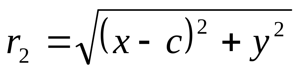 Если оси координат расположены так, что Ox проходит через фокусы F1(C,0) и F2(-C,0), а О(0,0) совпадает с серед отрезка F1F2, то по F1М+F2M получаем: