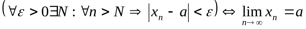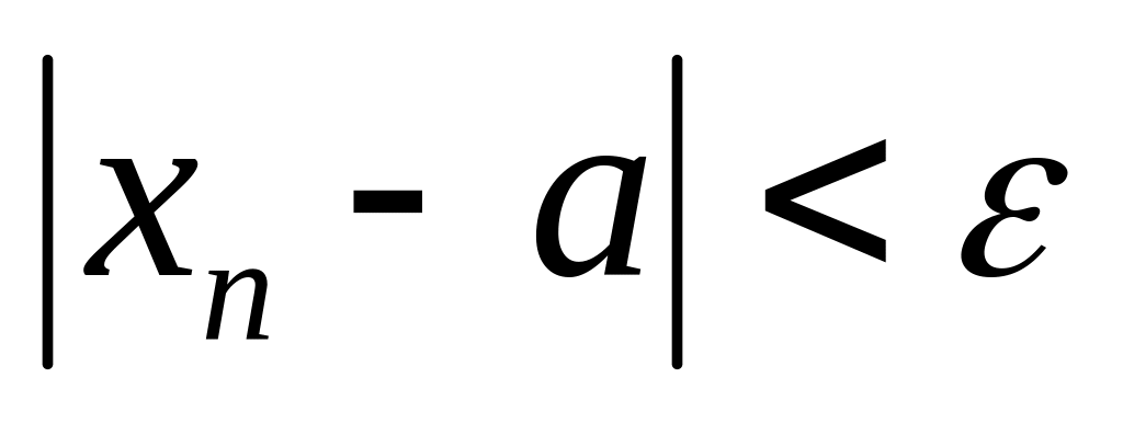 Число а называется пределом последовательности, если для любого положительного числа Е найдется такое натуральное число N, что при всех n>N выполняется равенство: