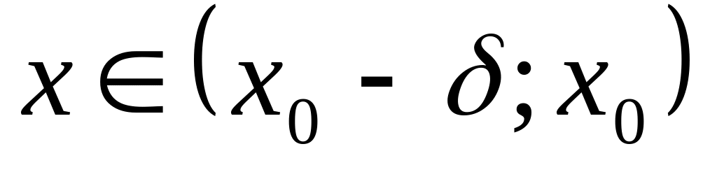 число А называется пределом функции слева в точке x0, если для любого число >0 существует число = ( )>0 такое, что при выполняется неравенство .