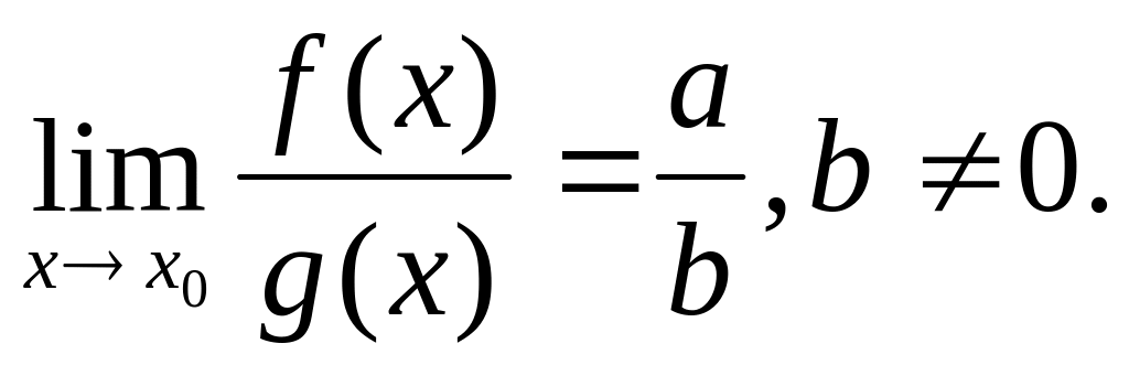 Теорема: частное от деления бесконечно малой функции на функцию, имеющую отличный от нуля предел, есть функция бесконечно малая.