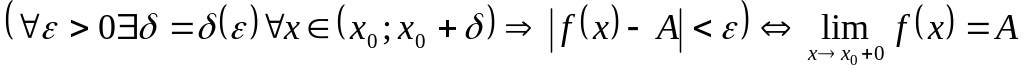 Аналогично определяется предел функции справа: