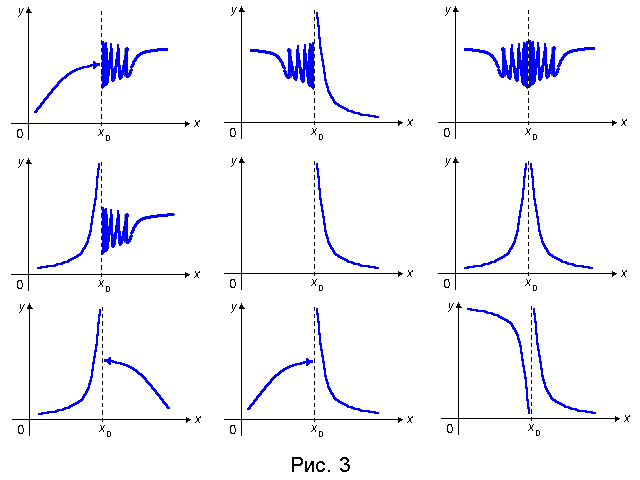 Точка х0 называется точкой разрыва 2 – го рода, если в этой точке функция f(x) не имеет хотя бы одного из односторонних пределов или хотя бы один из них бесконечен.