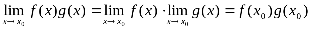 Теорема 1. Если функции f(x) и g(x) непрерывны в точке х0, то в этой точке непрерывны