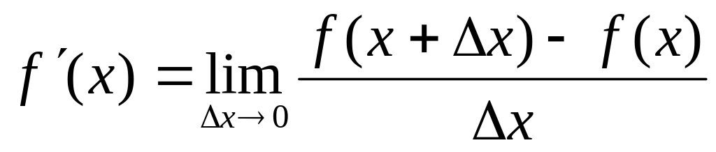 Определение. Производной функции f(x) в точке х = х0 называется предел отношения приращения функции в этой точке к приращению аргумента, если он существует.