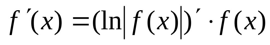 Способ логарифмического дифференцирования состоит в том, что сначала находят логарифмическую производную функции, а затем производную самой функции по формуле