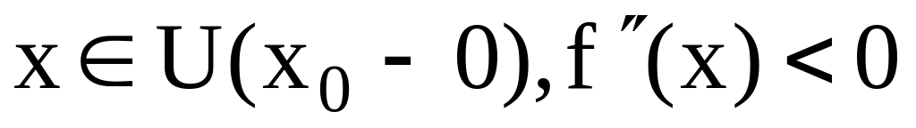 - График функции назыв. вогнутым (выпуклым вниз) на [a,b], если он расположен выше касательной (ниже хорды). Если в левой U( ) график функции выпуклый в одну сторону, а в правой окрестности в другую сторону, то -точка перегиба.