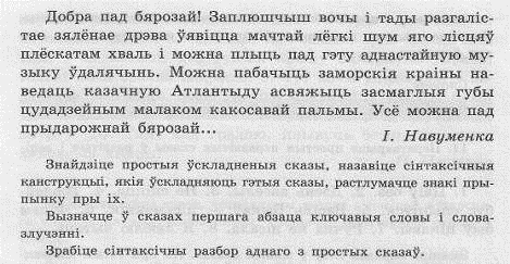 Раздзел «Аднасастаўныя сказы» падзелены на 8 параграфаў. Кожны з іх прапанозвае іншую падтэму, што адлюстроўвае шырокі спектр тэарэтычнага матэрыялу. Прапанавана вывучэнне аднасастаўных сказаў у практыкаваннях па выяўленню граматычнай асновы, пошуку галоўных членаў, і выяўленне відаў аднасастаўных сказаў у тэксце. Далей разглядаюцца віды больш дакладна кожны ў кожным наступным параграфе. На кожную тэму з наступным відам аднасасатўнога сказа маецца шэраг практыкаванняў: падкрэсліць галоўны член пэуна-асабовага сказа, няпэўна-асабовага сказу, скласці сказ з абагульнена-асабовым сказам, даказаць, што сказ з’яўляецца безасабовым і інш [1].